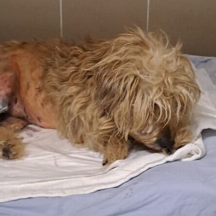 Anyoca hatte eine Familie in Ungarn, die gab sie allerdings ab als sie drei größere Tumore an ihrem Gesäuge und einen auf ihrem Fuß hatte. Sie wurde im Tierheim bereits operiert, jedoch hat sie noch eine OP vor sich, da sie leider noch weitere kleine Mammatumore hat.
