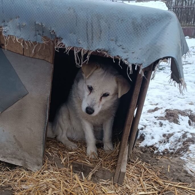 Barka ist leider blind. Die neue Situation war zunächst recht belastend für sie, sie war im Tierheim natürlich unsicher und verkroch sich gerne in ihre Hütte. Mittlerweile kann sie sich dort gut orientieren und lebt als Hofhund mit einigen anderen Hunden zusammen. Sie orientiert sich manchmal durch leichtes „Knibbeln“ an den Waden, um herauszufinden was bzw. wer sich gerade in ihrer Nähe befindet.