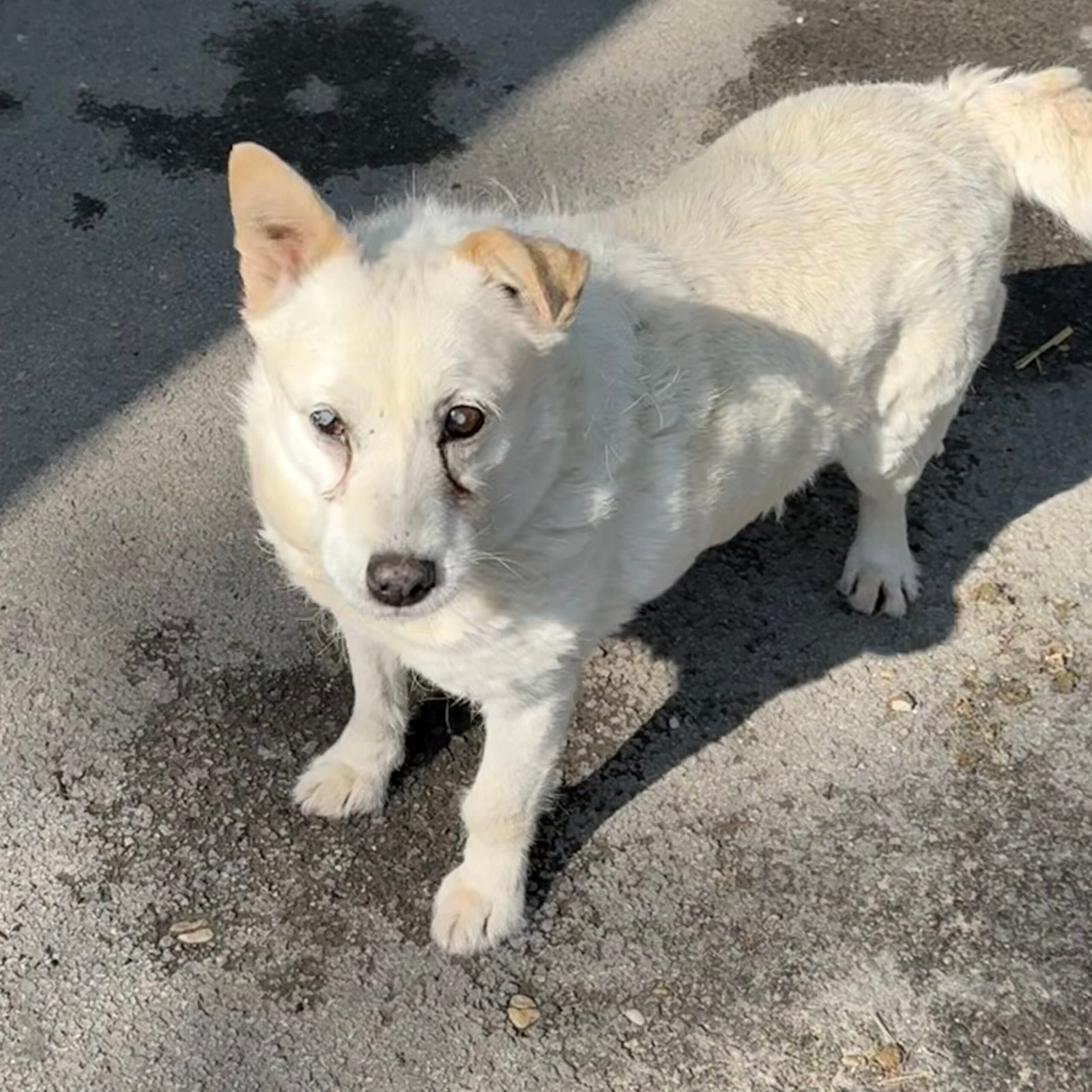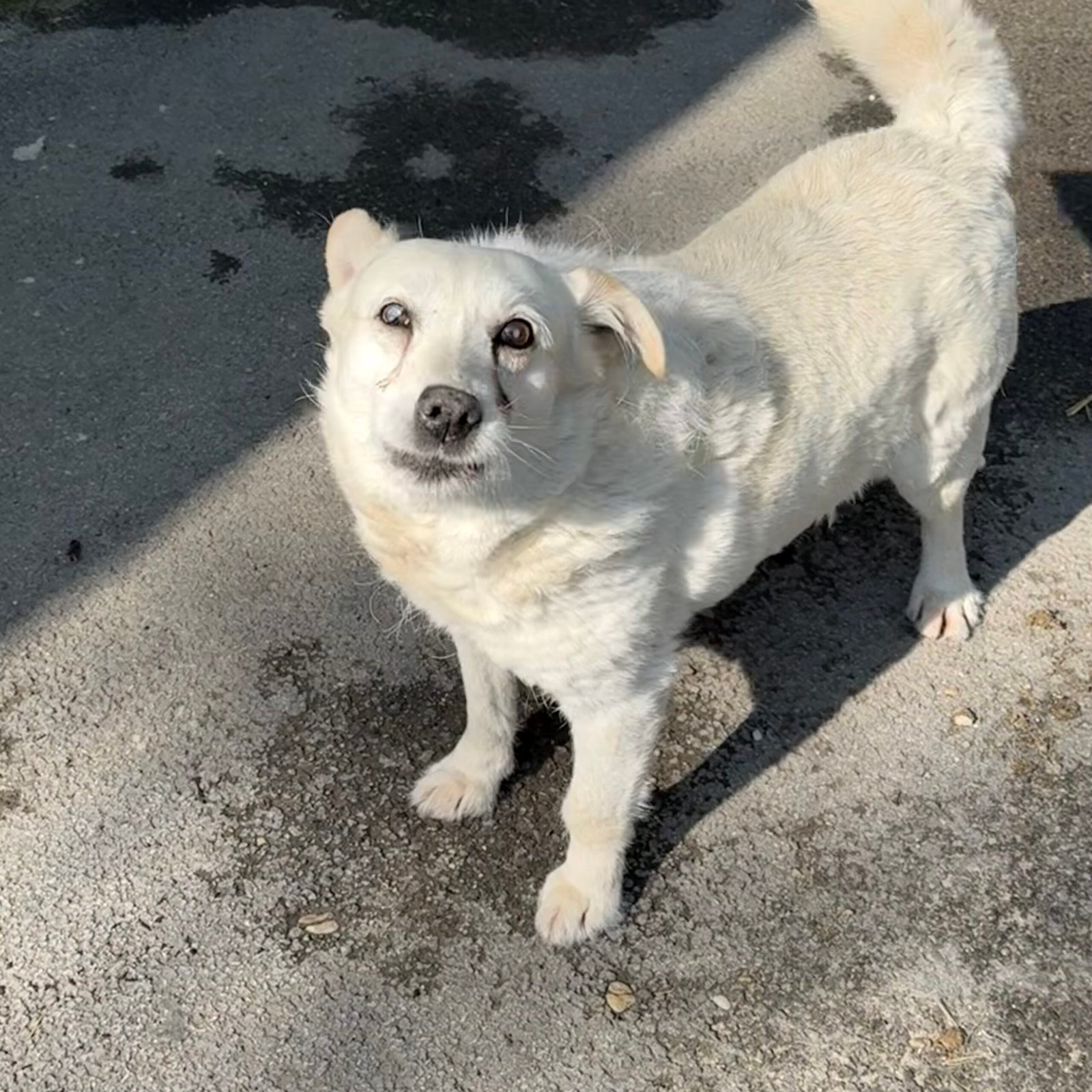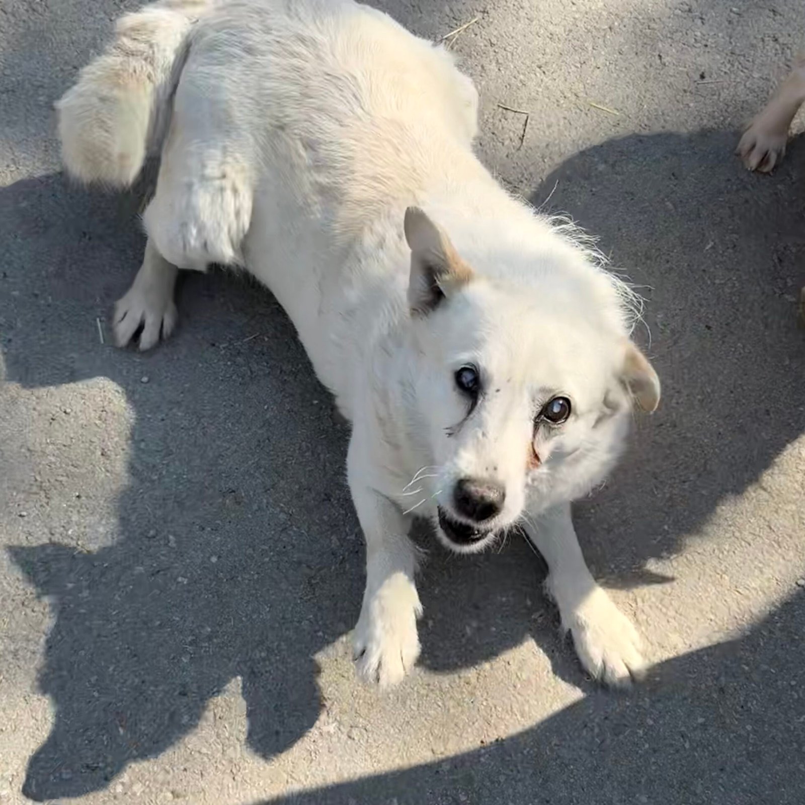 Barka ist leider blind. Die neue Situation war zunächst recht belastend für sie, sie war im Tierheim natürlich unsicher und verkroch sich in ihre Hütte. Mittlerweile kann sie sich dort gut orientieren und lebt als Hofhund mit einigen anderen Hunden zusammen. Sie orientiert sich manchmal durch leichtes „Knibbeln“ an den Waden, um herauszufinden was bzw. wer sich gerade in ihrer Nähe befindet.