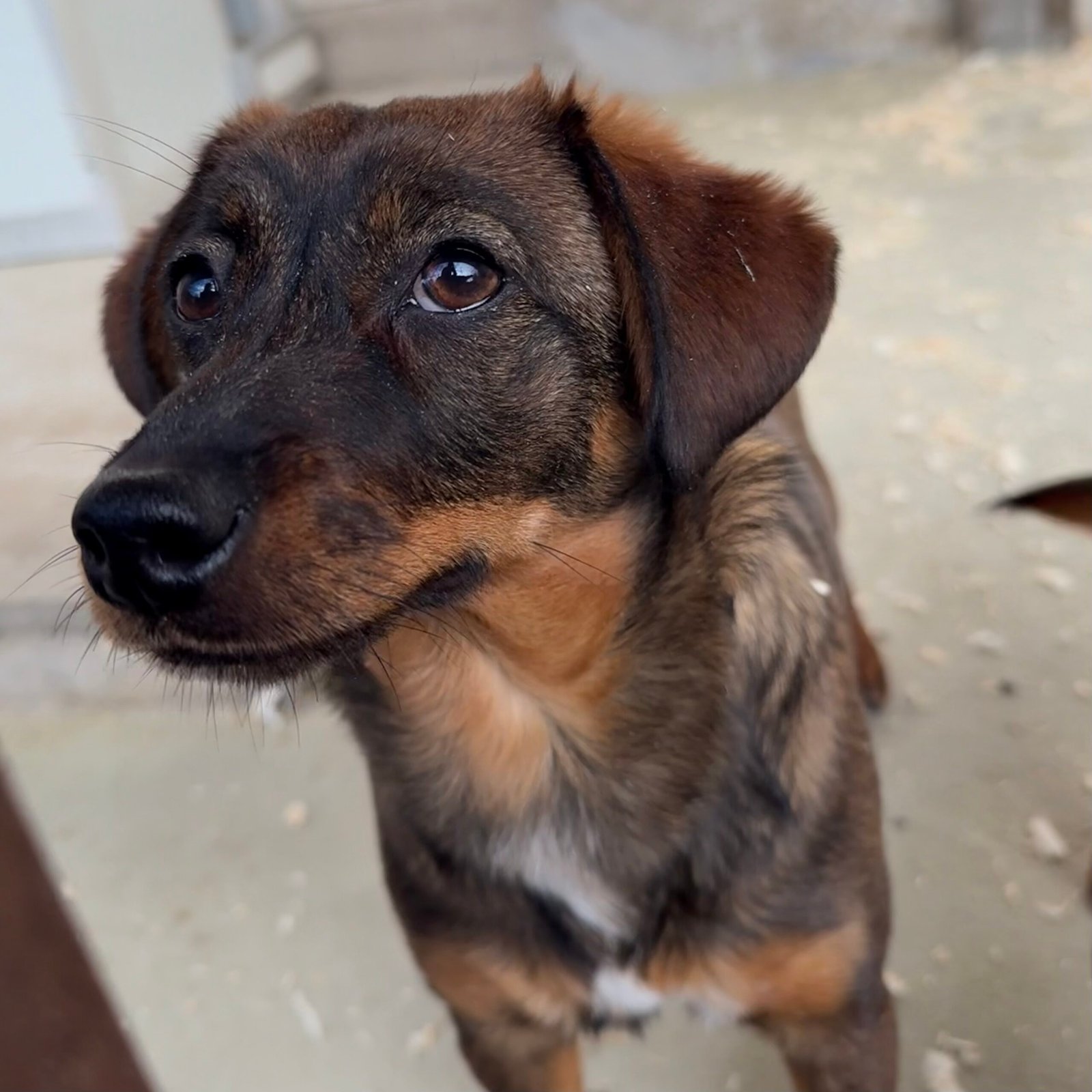 Cseni wurde mit ihrem Hundekumpel auf der Straße gefunden. Sie hatten ein Zuhause, aber dort wurde sich nicht um die beiden gekümmert. Der Garten hatte zudem keinen Zaun, so dass sie ständig auf der Straße umher liefen. Das war natürlich so zu gefährlich und die Besitzer schafften es auch nicht einen neuen Zaun zu ziehen, deshalb sind nun beide Hunde in unserem Partnertierheim.