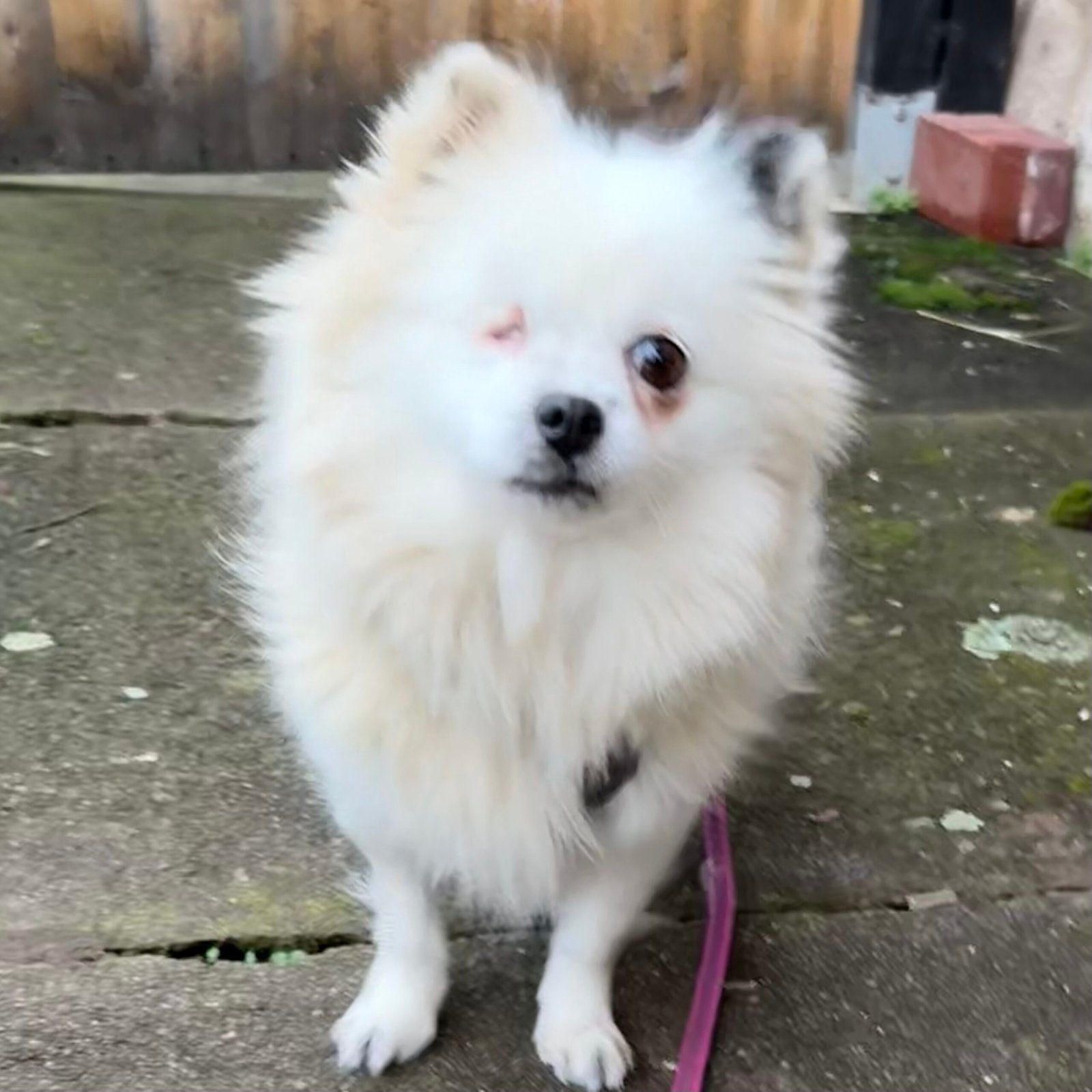 Ihr rechtes Auge fehlt leider, auch hier wissen wir nicht wie das passiert ist. Sie kommt sehr gut damit zurecht und sie hat keine Probleme damit.