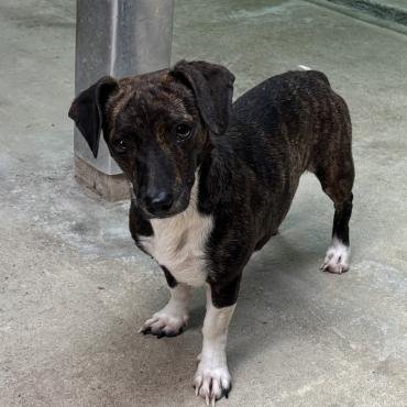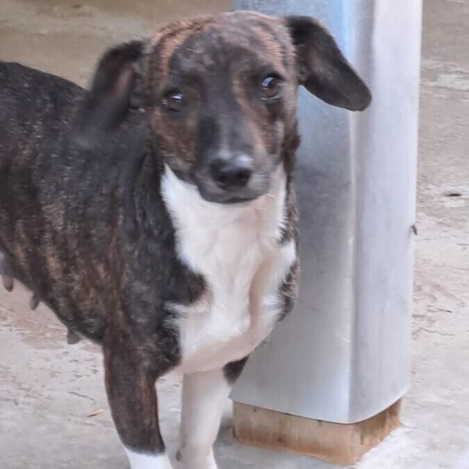 Eline stammt aus einer Familie, in der sich immer wieder eine Gruppe schlecht sozialisierter Hunde auf der Straße versammelte. Die Besitzer kümmerten sich nicht um die Hunde, dementsprechend kannten sie auch kaum den Kontakt zu Menschen.