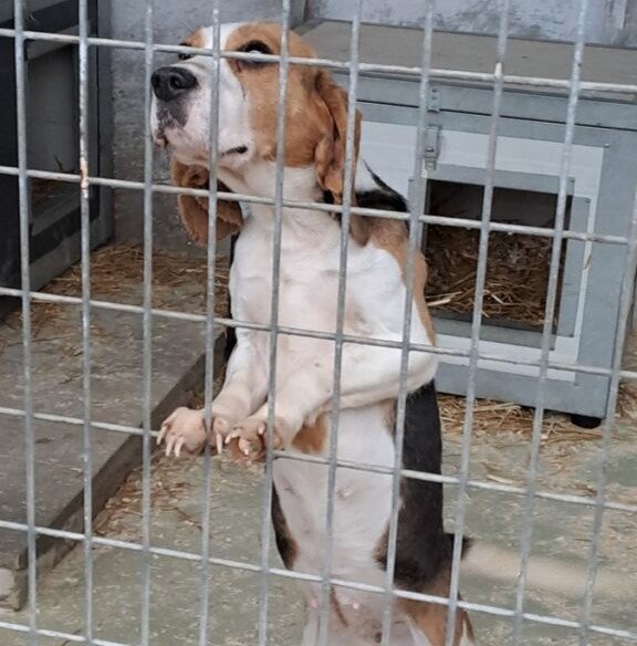 Die Beagle-Hündin Etta wurde einfach mit einem weiteren Hund bei einem Haus gelassen. Beinah wären beide verhungert. Etta konnte in unser Partnertierheim ziehen und ihr Hundekumpel in eine anderes Tierheim.