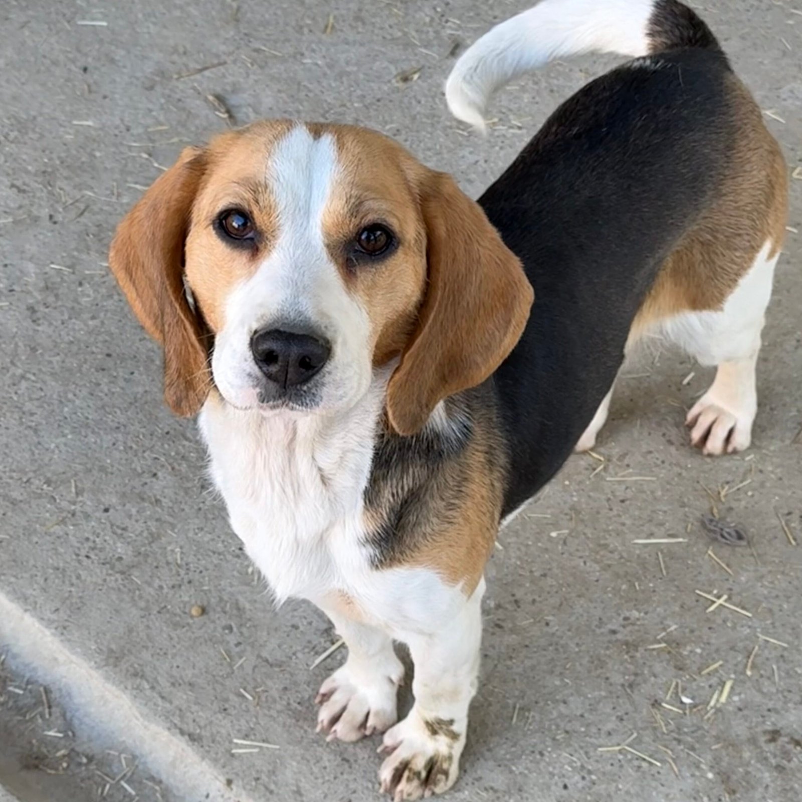 Die Beagle-Hündin Etta wurde einfach mit einem weiteren Hund bei einem Haus gelassen. Fast wären beide verhungert. Etta konnte in unser Partnertierheim ziehen und ihr Hundekumpel in eine anderes Tierheim.