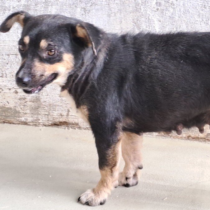 Sie war sehr dünn bei ihrer Ankunft und ist auch noch schüchtern. Vermutlich hat sie schon einiges mitmachen müssen. Langsam kann sie sich nun erholen und öffnet sich bereits den Tierheimmitarbeitenden. Leckerlies liebt sie und arbeitet dann schön mit.