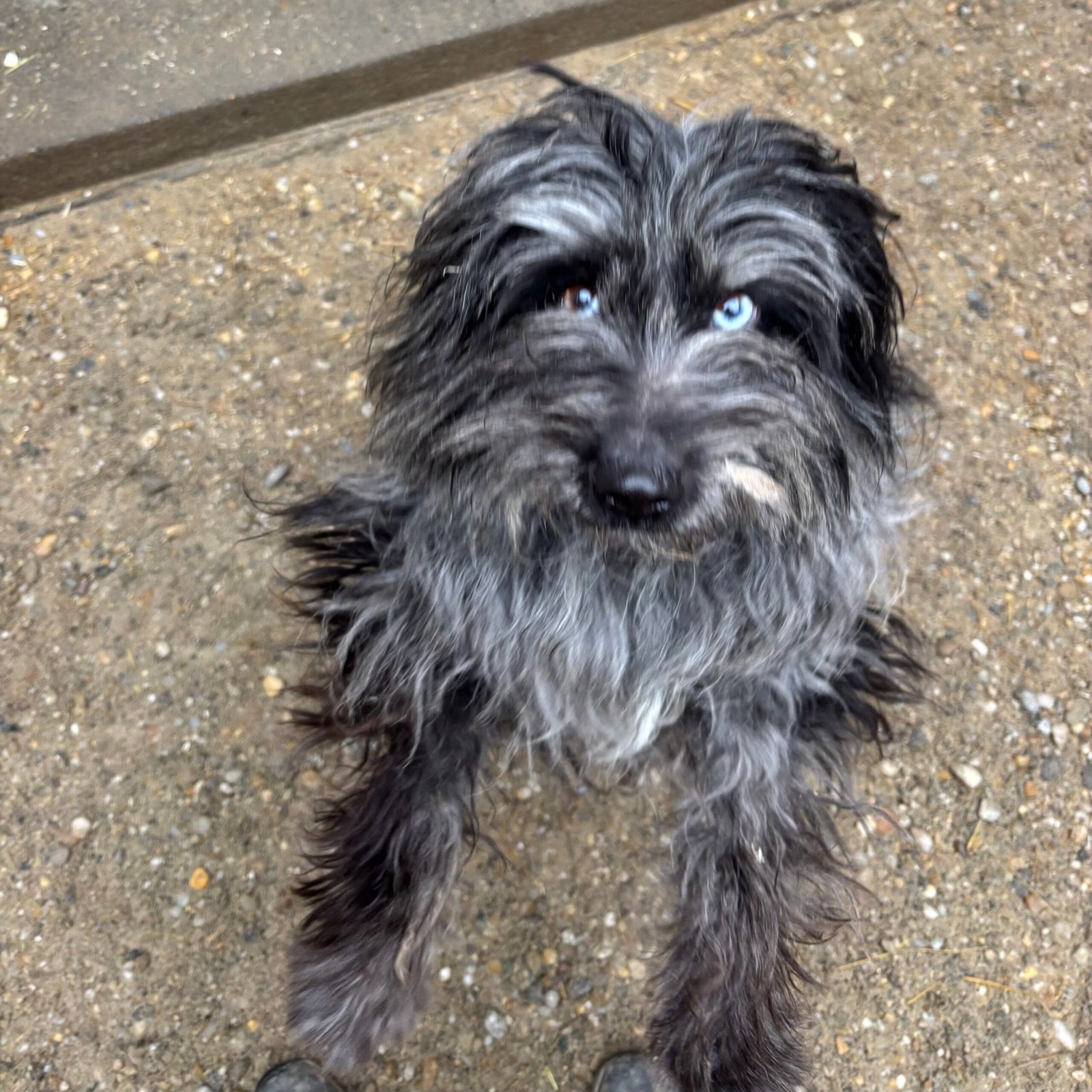 Anfangs war sie mit der neuen Situation im Tierheim sehr überfordert und wollte weder zu den Menschen noch zu den Hunden Kontakt aufbauen. Mittlerweile mag sie die Menschen, ist freundlich und ist sogar beim Scheren sehr lieb gewesen. Auch mit Hunden ist sie gut verträglich und spielt gerne mit ihnen, jedoch bevorzugt sie größere Hunde, mit kleineren ist sie manchmal dominant.