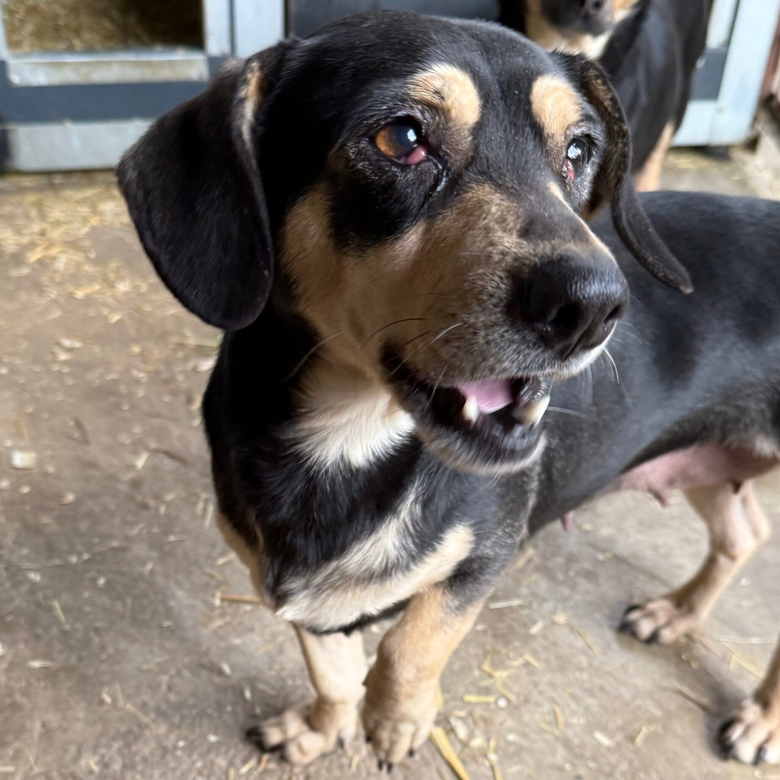 Nati ist anfangs etwas schüchtern und ängstlich, aber sie ist immer freundlich und kommt mit anderen Hunden gut aus. Nati muss operiert werden, die sie einen Nickhautvorfall am Auge hat.