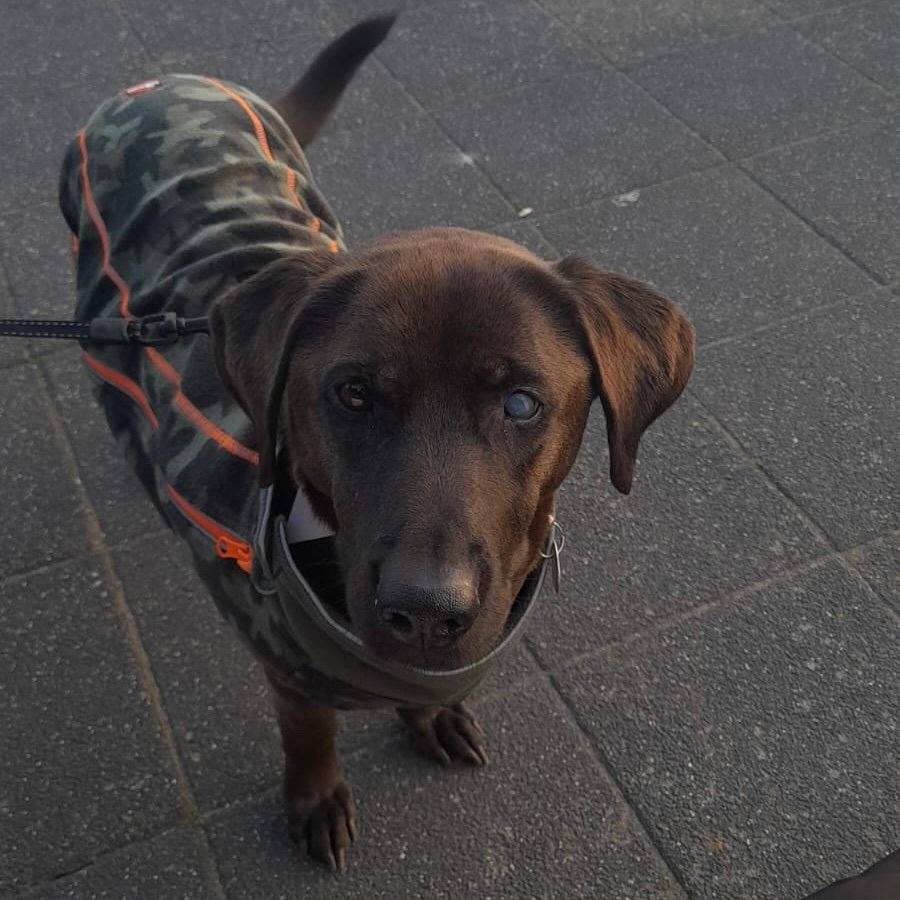 Sie ist eine besonders freundliche und ruhige Hündin. Sie geht gerne Gassi, läuft gut an der Leine, kann gut im Auto mitfahren und liegt einfach unter dem Tisch, wenn sie ins Restaurant mitgenommen wird. Katzen interessieren sie nicht und kommt sehr gut mit anderen Hunden aus.