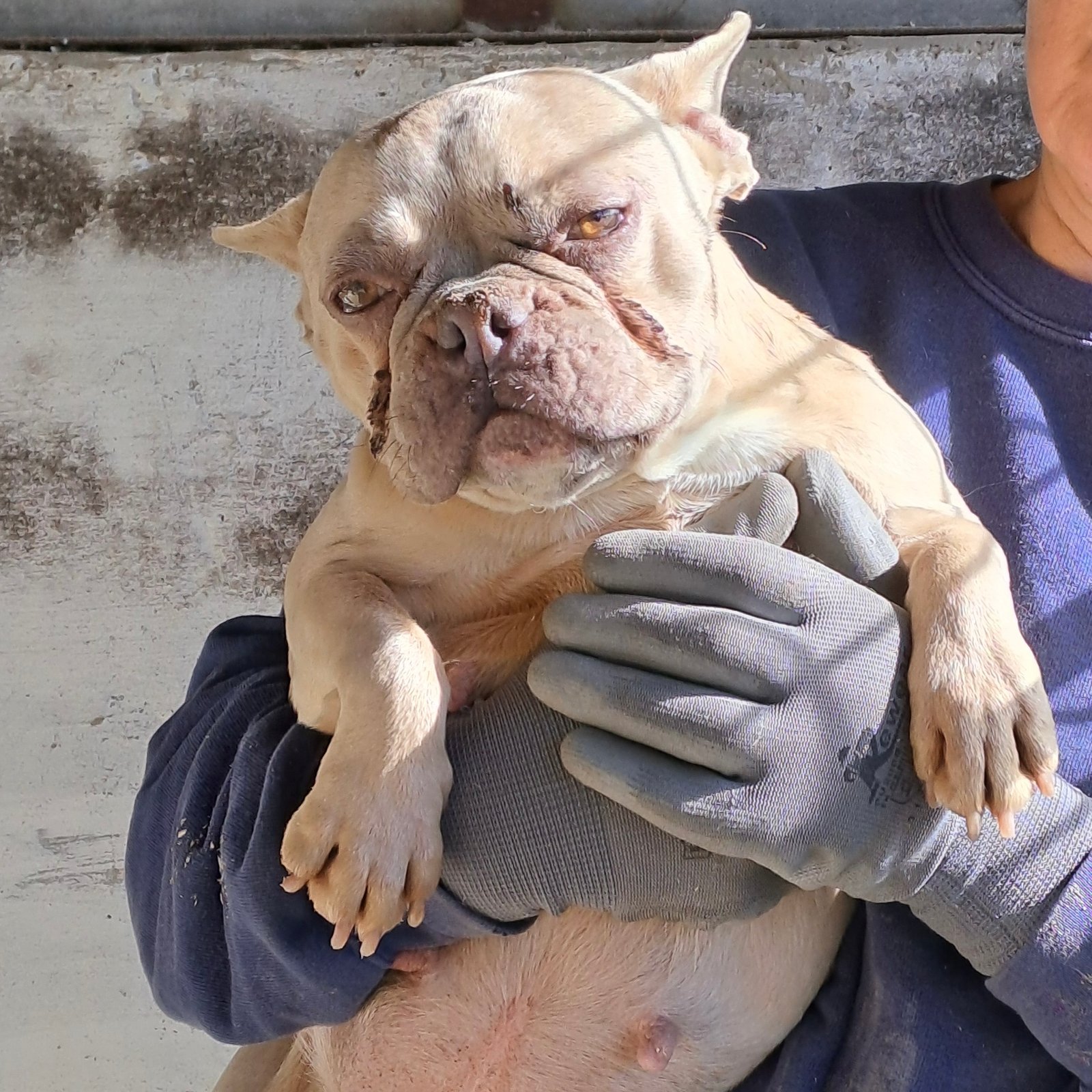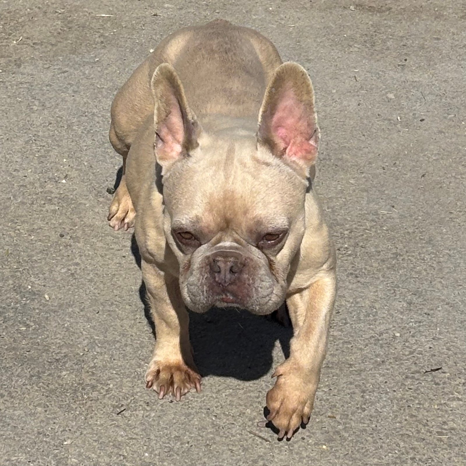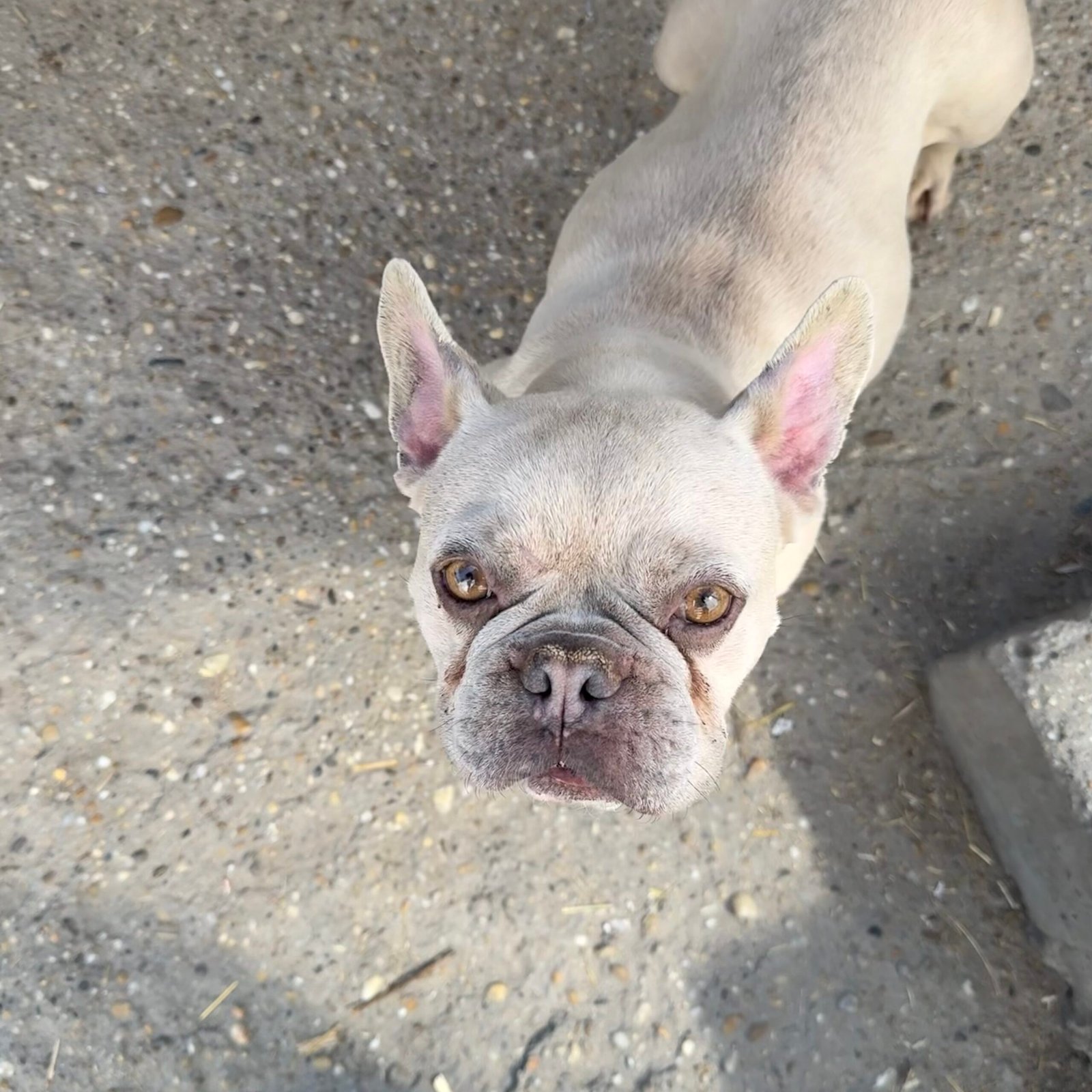 Nun sucht sie ein liebes Zuhause mit Menschen, die sich um sie kümmern möchten, möglichst mit Bulldoggen Erfahrung.