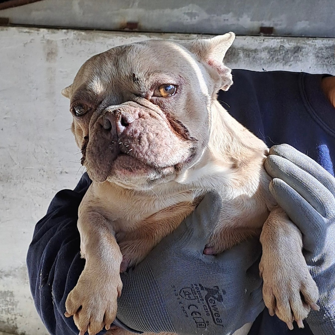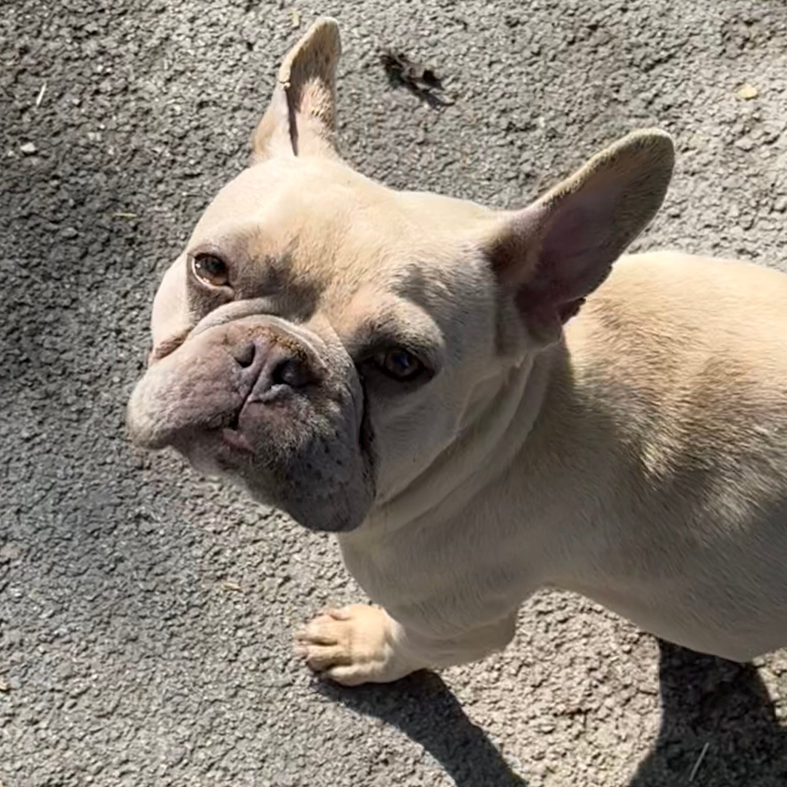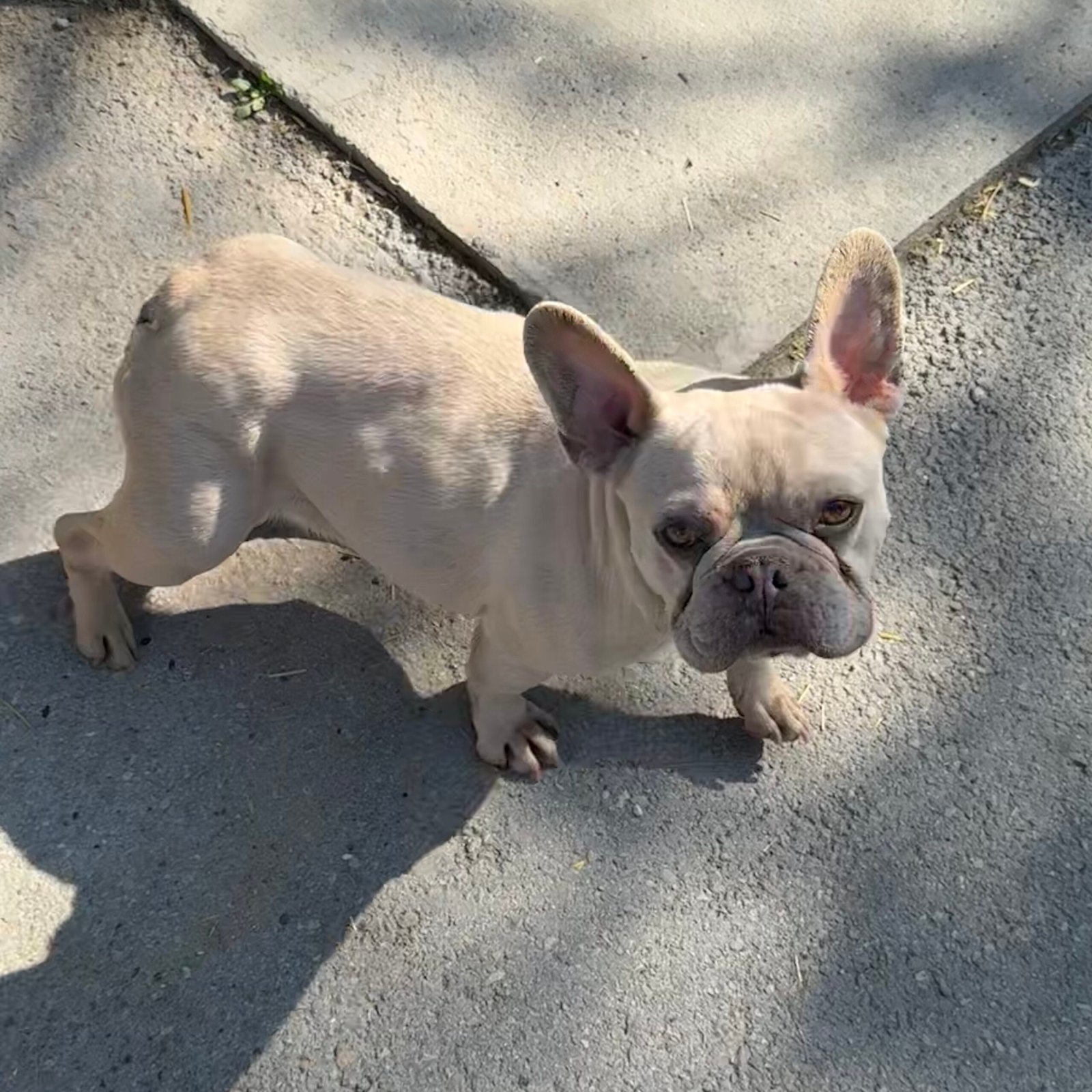Nun sucht sie ein liebes Zuhause mit Menschen, die sich um sie kümmern möchten, möglichst mit Bulldoggen Erfahrung.