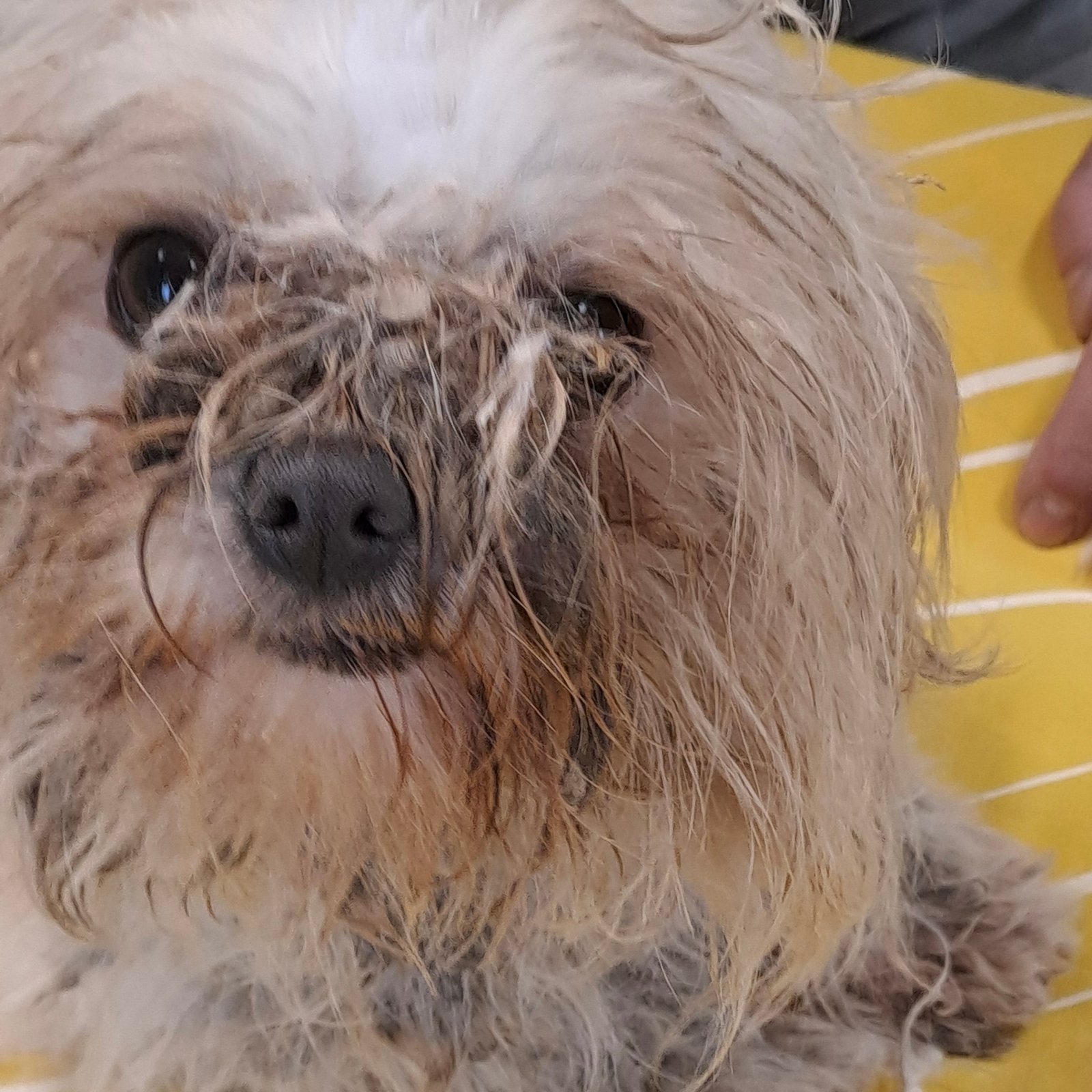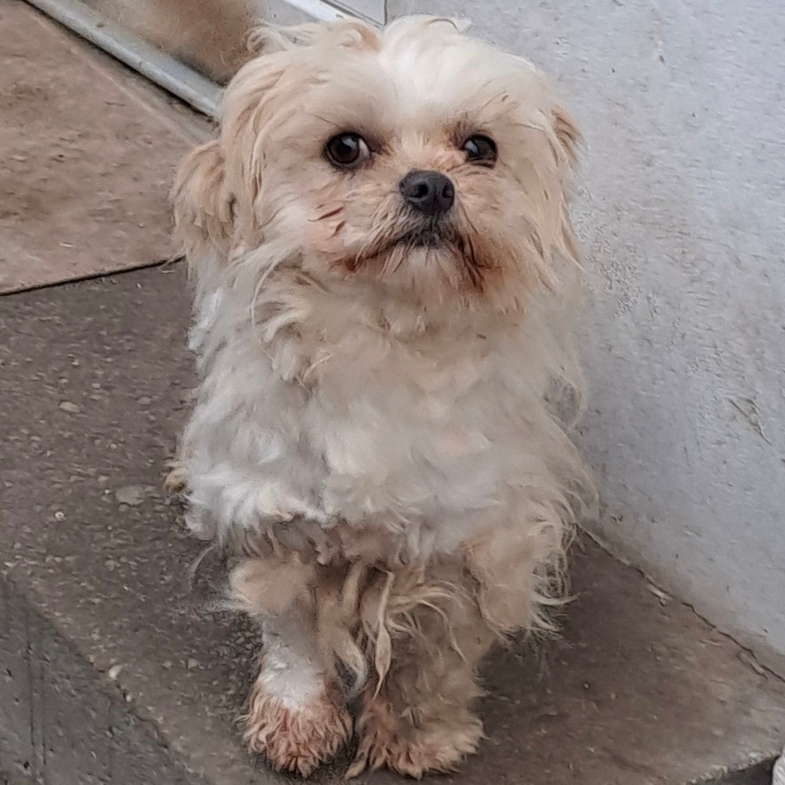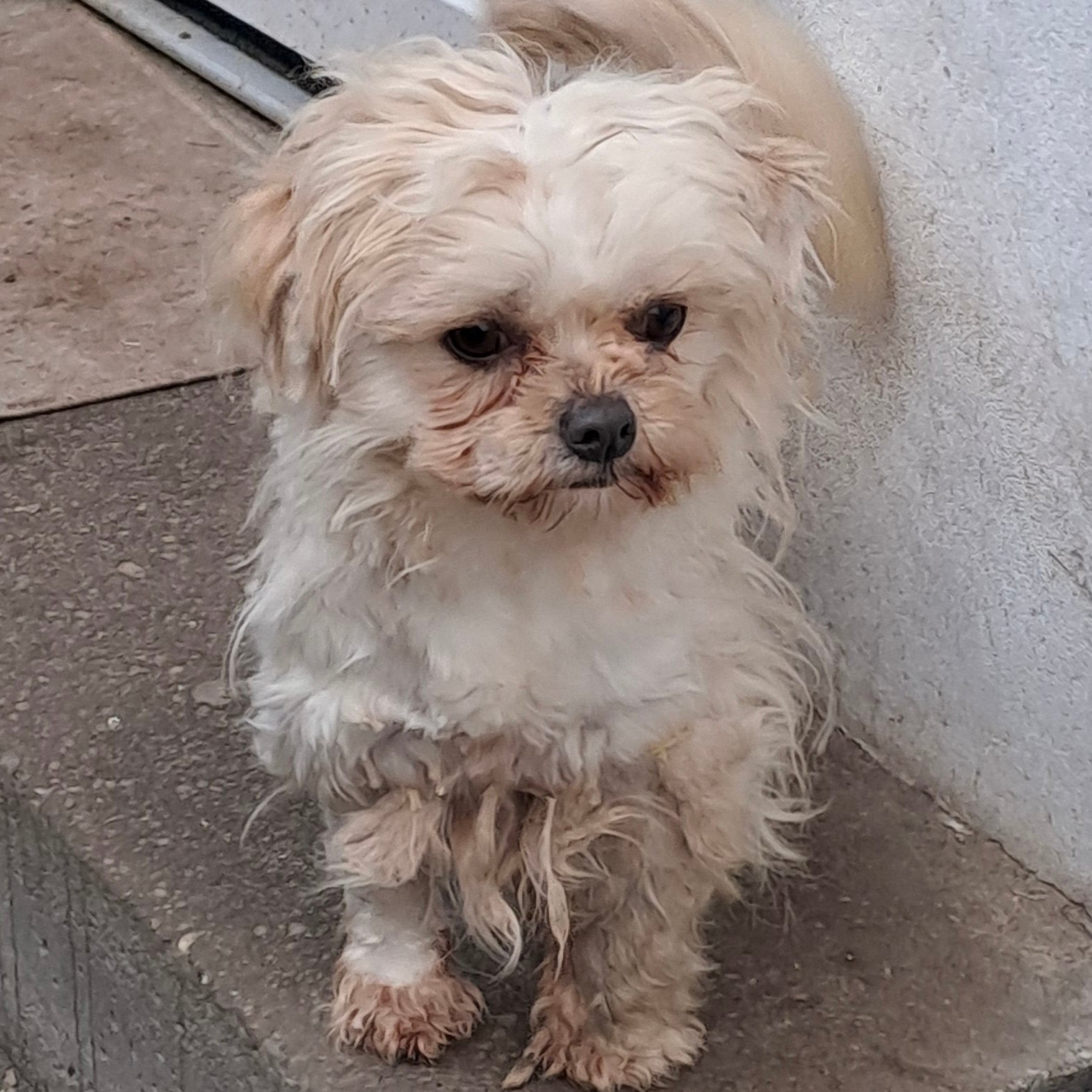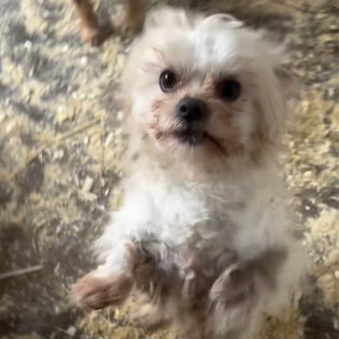 Die kleine Pihe wurde ständig sehr ungepflegt und allein auf der Straße in einem Dorf gesichtet. Da die ehemaligen Besitzer sich nicht besser um sie kümmern wollten, wurde sie ihnen weggenommen und kam in unser ungarisches Partnertierheim.