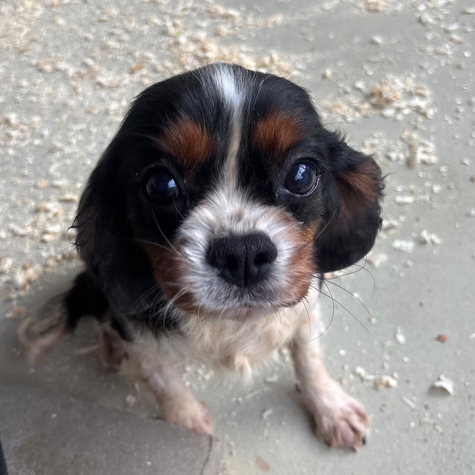 Poppy ist noch schüchtern, aber sehr freundlich. Sie hat leichte Hornhautverletzungen und bekommt regelmäßig ein Augen-Gel (Corneregel).