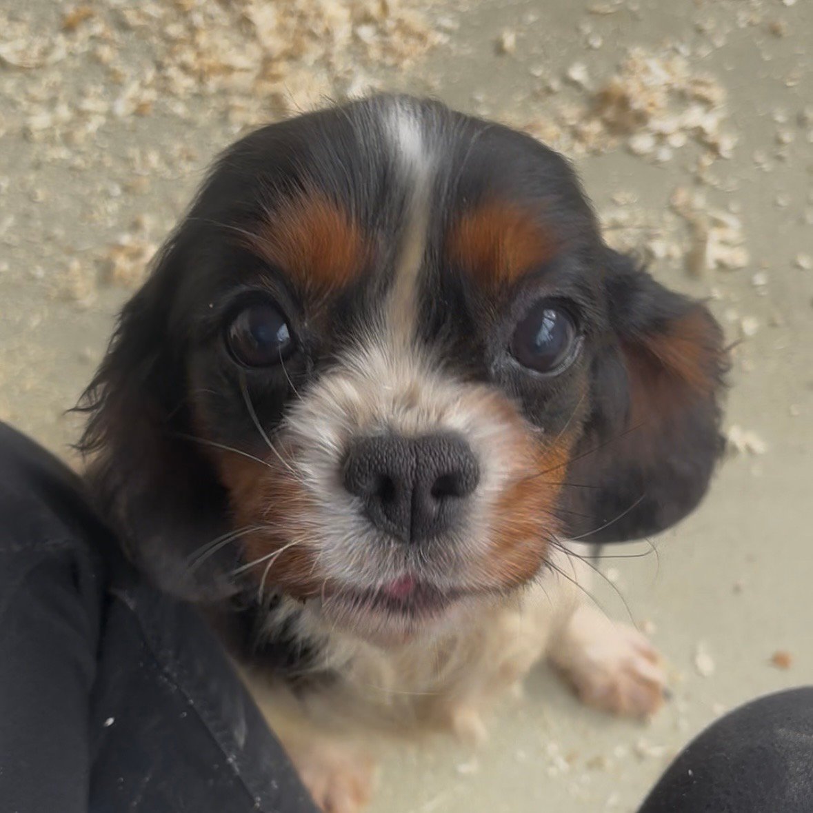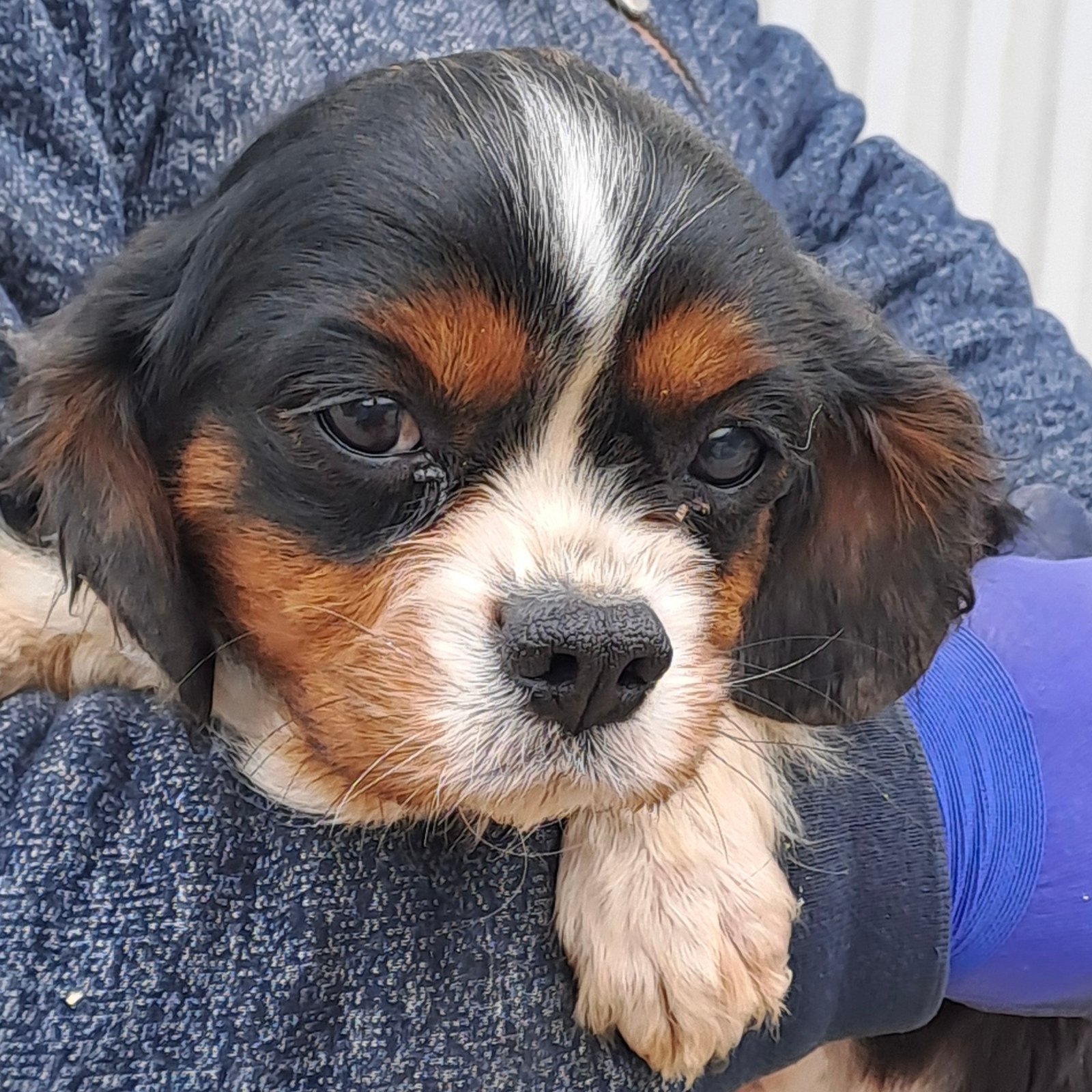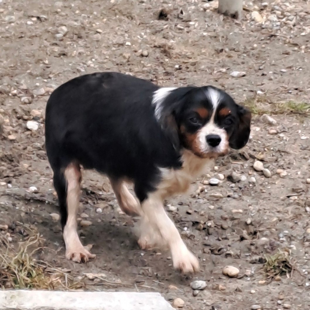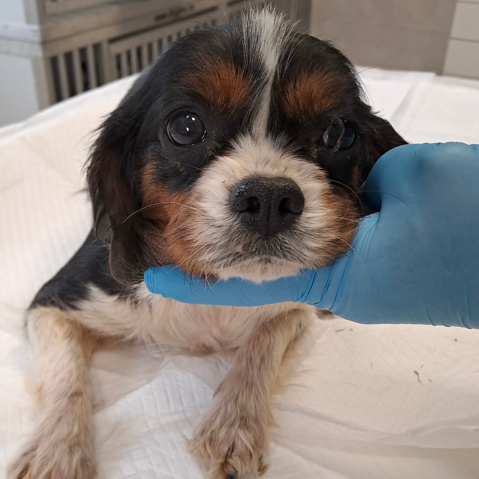 Poppy ist noch schüchtern, aber sehr freundlich. Sie hat leichte Hornhautverletzungen und bekommt regelmäßig ein Augen-Gel (Corneregel).