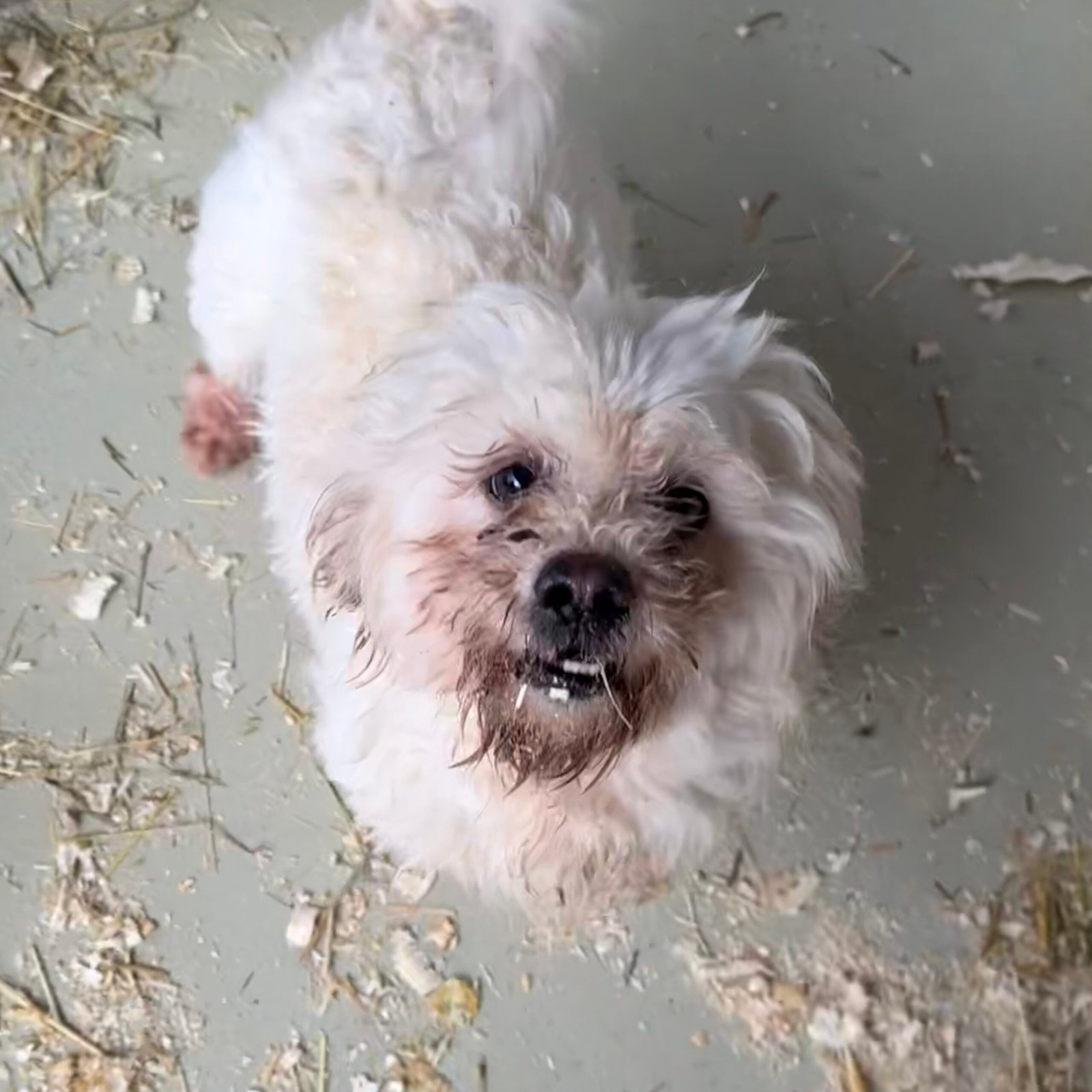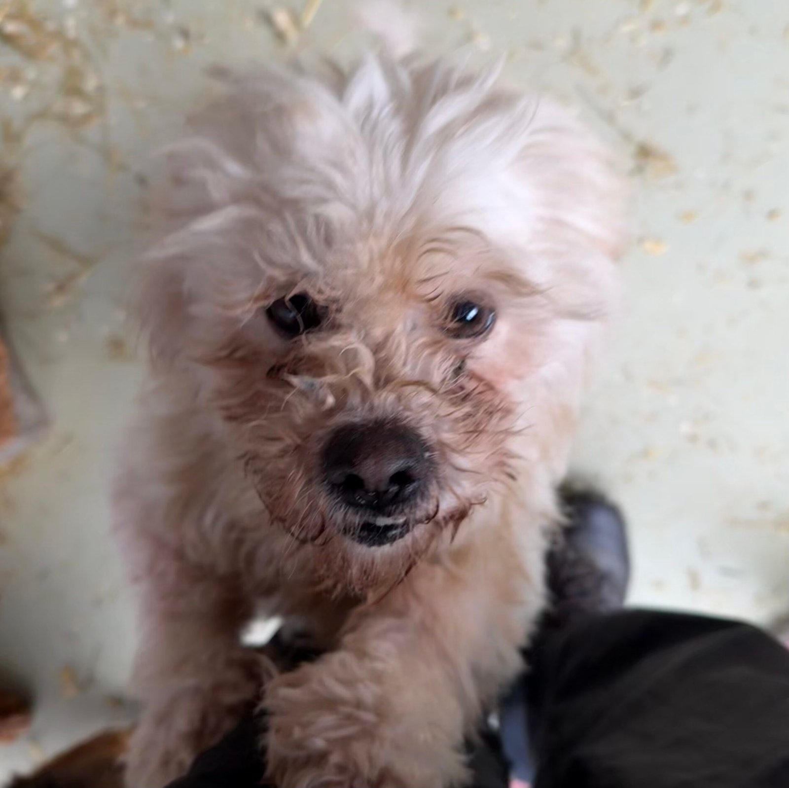Die kleine Bichon-Mix Hündin Susse wurde in einem fürchterlichen Zustand zwischen zwei Dörfern gefunden. Sie war stark abgemagert und ihr Fell war völlig verfilzt. Man mag sich gar nicht vorstellen wie sie bisher gelebt haben muss.
