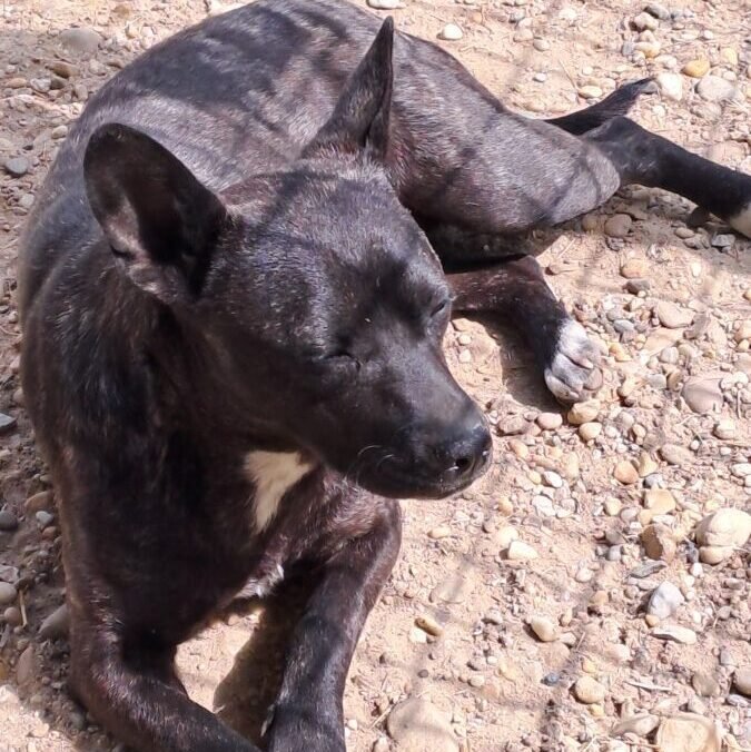 Zafira ist noch ängstlich, zurückhaltend und schüchtern. Sie ist sehr ruhig in ihrem Zwinger und liegt am liebsten in der Sonne oder spielt mit ihrer Hundefreundin.