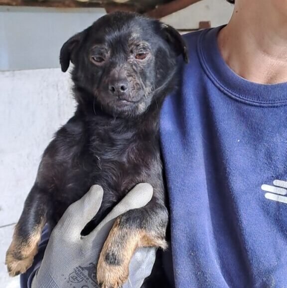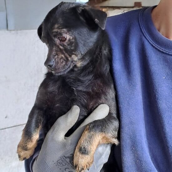 Zebi hat leider Demodex Milben und wird aktuell dagegen behandelt. Der Juckreiz wird durch die Tabletten vergehen, ihre Haut wird bald wieder heilen und ihr Fell nachwachsen.