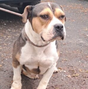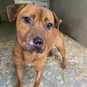 Jorja wurde allein auf der Straße gefunden und niemand suchte nach ihm. Aufgrund seiner Rasse -American Bulldogge-Mix - dürfen wir ihn leider nicht vermitteln. Er ist ein lieber, noch schüchterner Rüde.